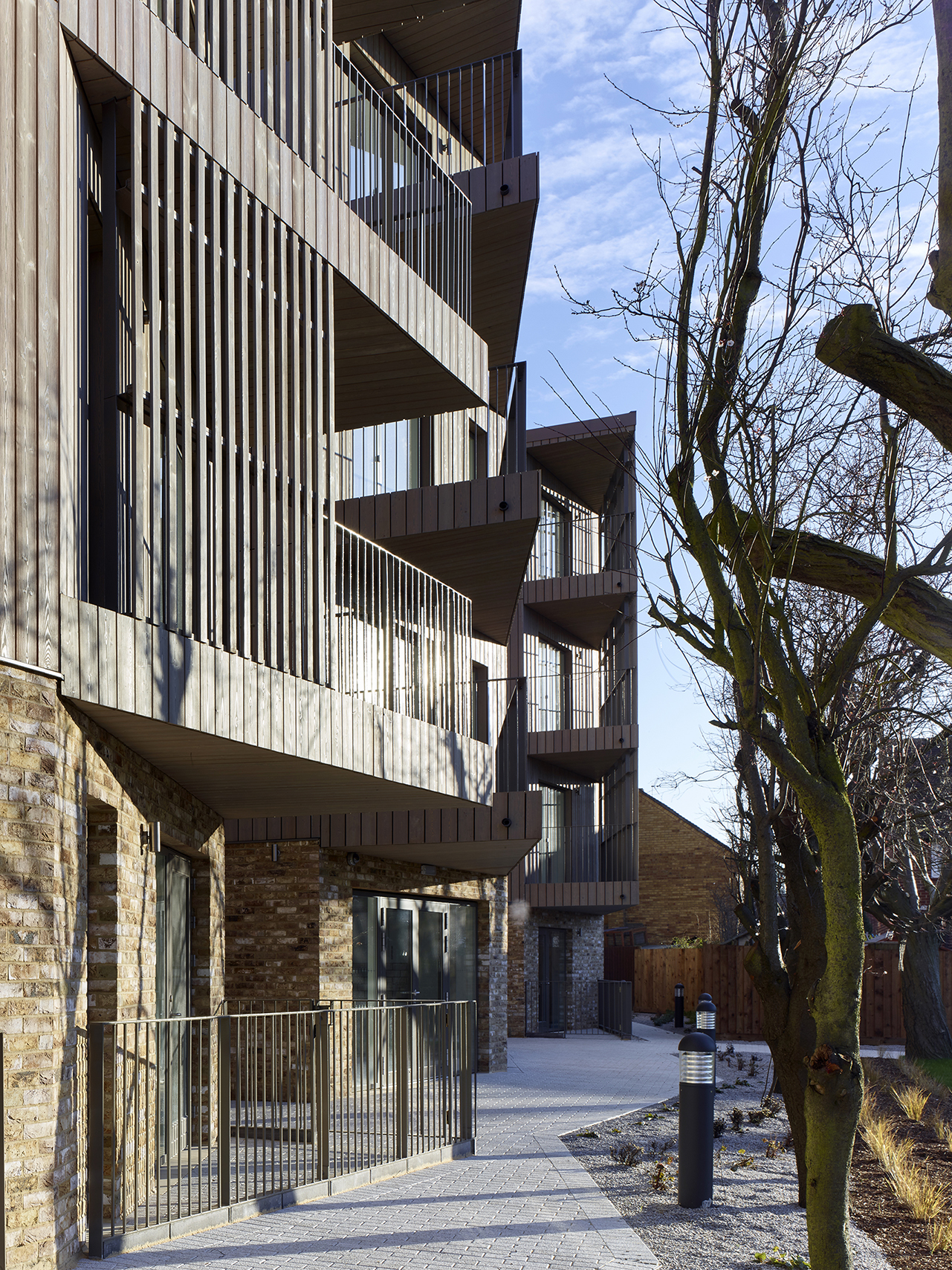 The design helps to foster a strong, coherent and friendly community, increasing visual and physical connectivity between each resident and further to the society beyond. A range of communal spaces facilitate social interaction internally and provide visual connectivity with the surrounding area. Much of the social space is located in the glazed links that incorporate seating areas overlooking the community garden where interaction with the wider community is made possible.