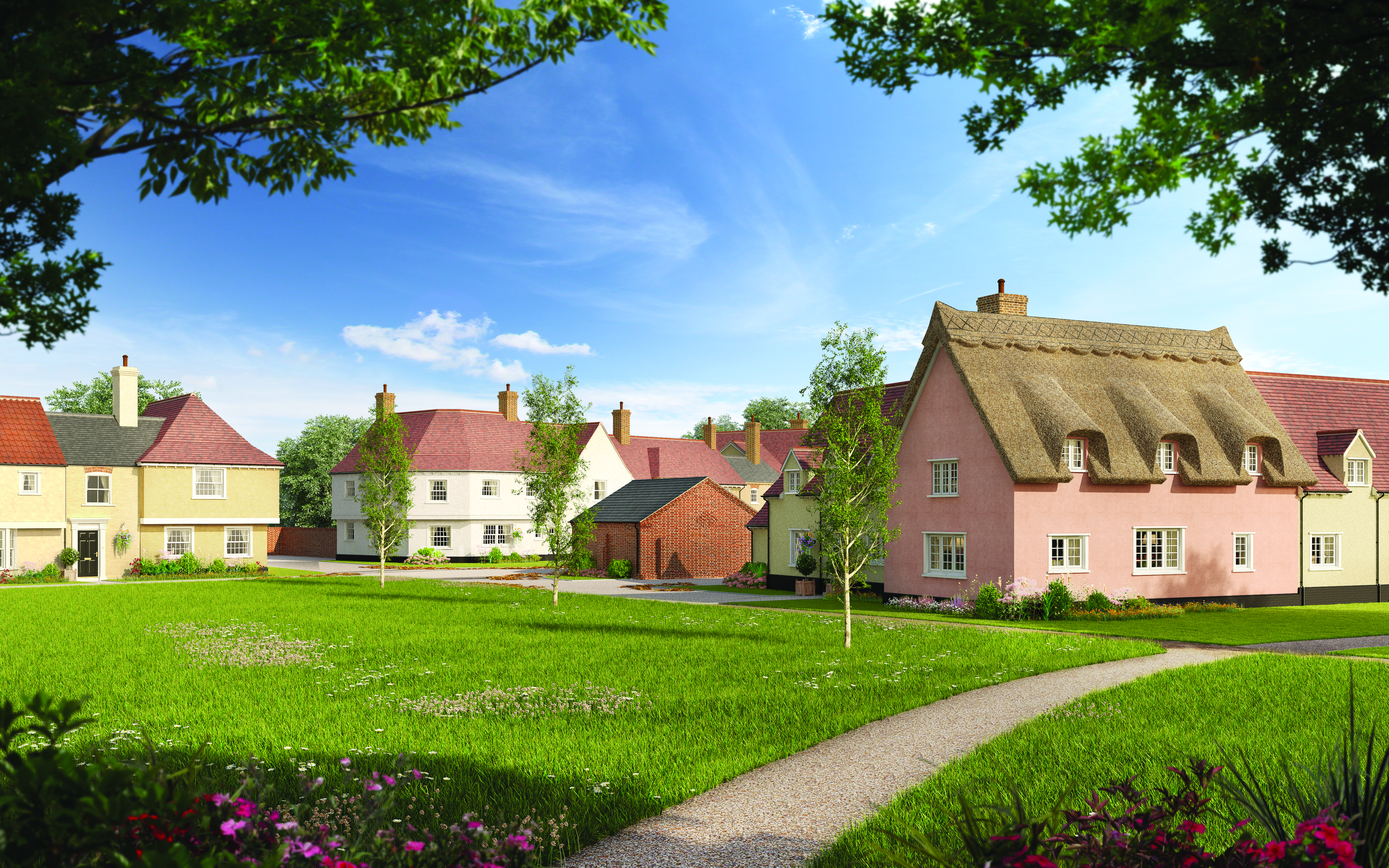 In line with the EDG facing and roof materials have been selected from the range of regional materials characteristic of Essex, specifically to reflect the local vernacular palette. The walls will use a number of combinations of brick, timber and lime render and the roof treatment will be clay tiles, slate or thatch. A large number of the proposed houses will have a rendered finish, as the scheme aims to reflect the historic streets of Essex the majority of houses being a rendered finish is supported and promoted by the EDG.