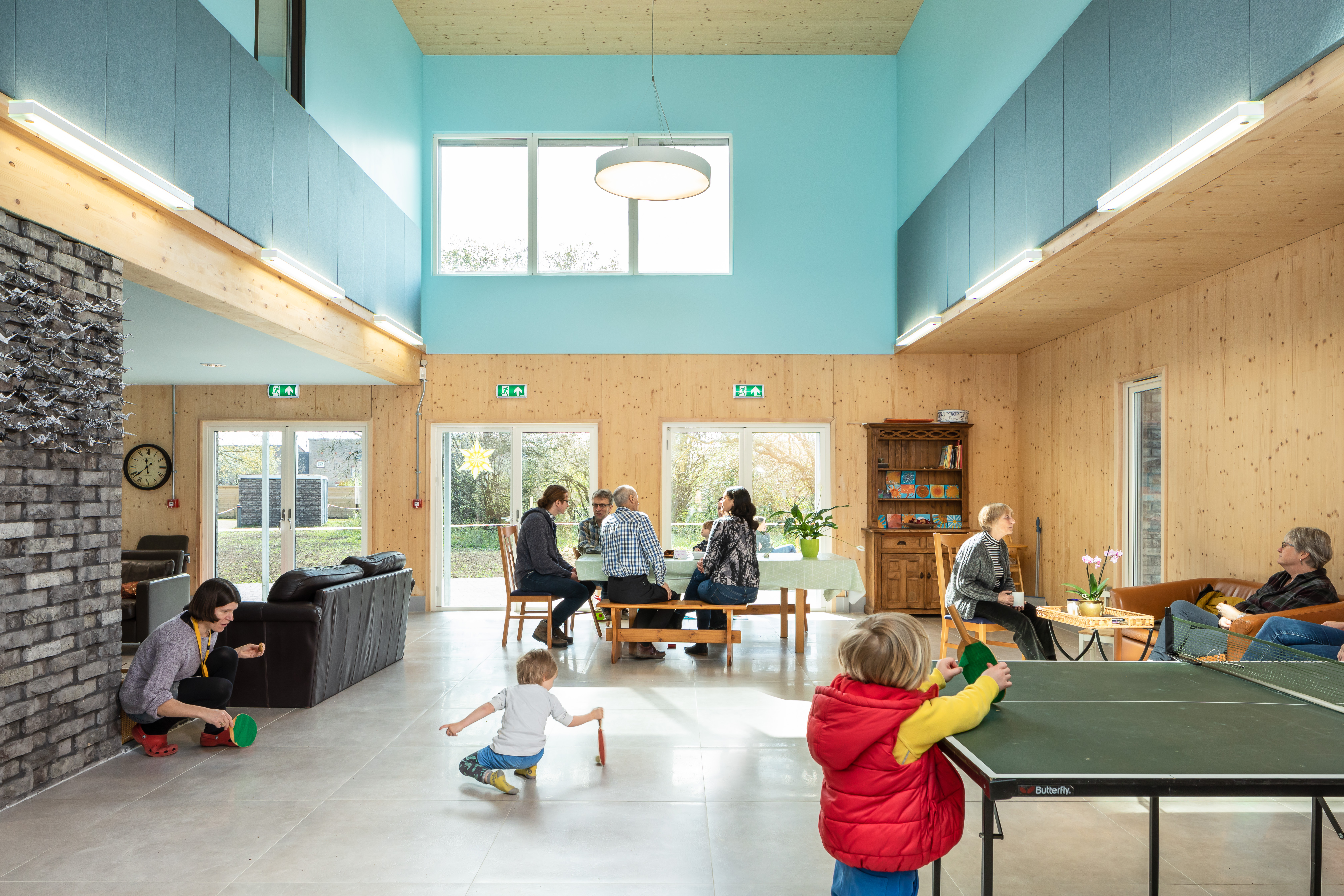 Marmalade Lane’s shared spaces and communal facilities are designed to foster community spirit and sustainable living. These include extensive shared gardens as the focal space of the community, with areas for growing food, play, socialising and quiet contemplation, and a flexible ‘common house’ with a play room, guest bedrooms, laundry facilities, meeting rooms, and a large hall and kitchen for shared meals and parties. A separate workshop is located elsewhere on site. Residents have a stake in the common parts and contribute to the management of the community. The Common House is at the physical and social heart of the K1 Cohousing community. An architectural one-off contrasting with the familiar rhythm of the terraces, the building includes facilities for communal use by all of the households.