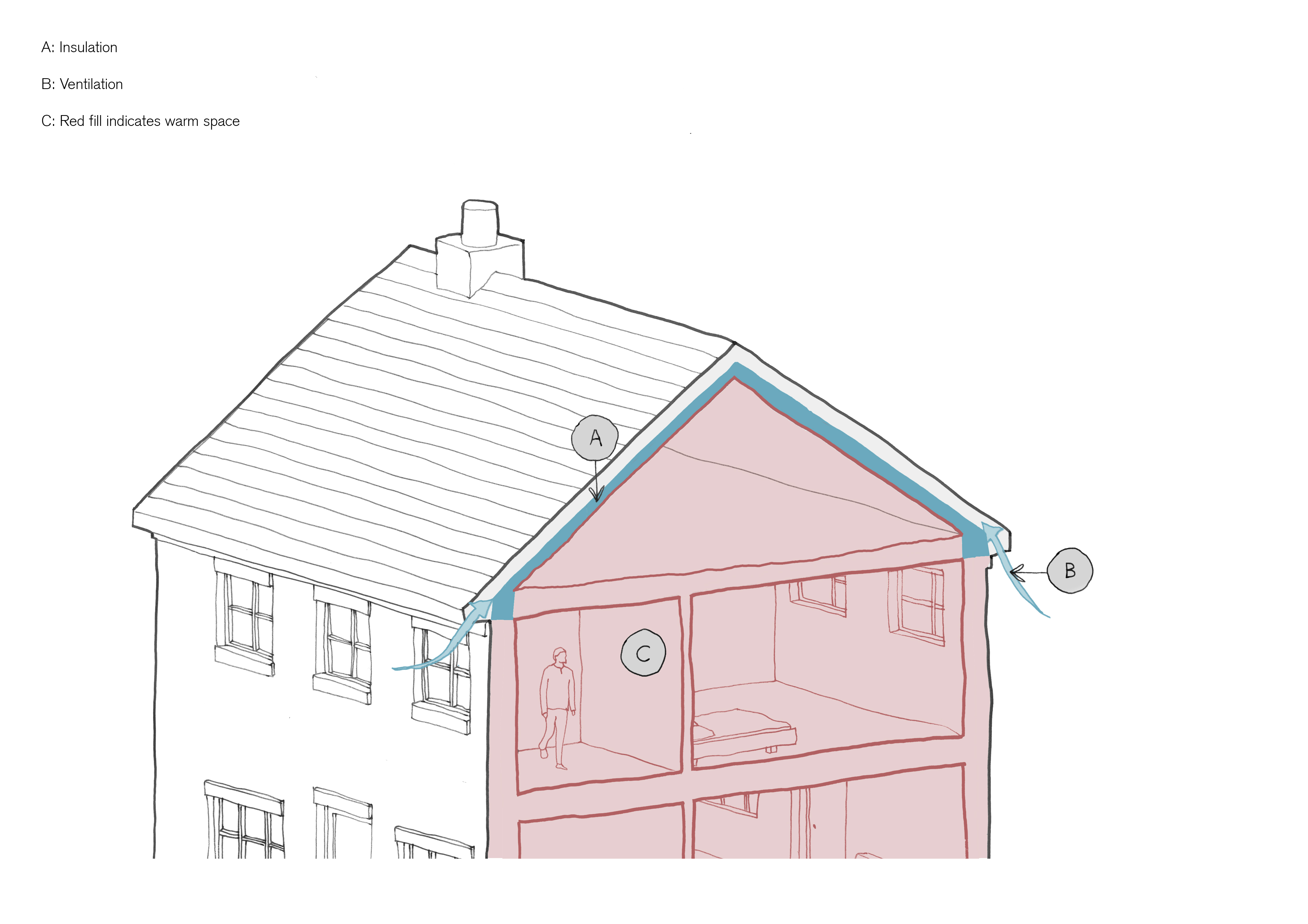 Typically, up to 25% of heat loss is through the roof. As such, installing roof insulation can often be an effective energy efficiency measure. However, as with insulating any element of a building, there careful consideration should be given to the type of insulation being installed and the method of insulation.