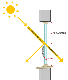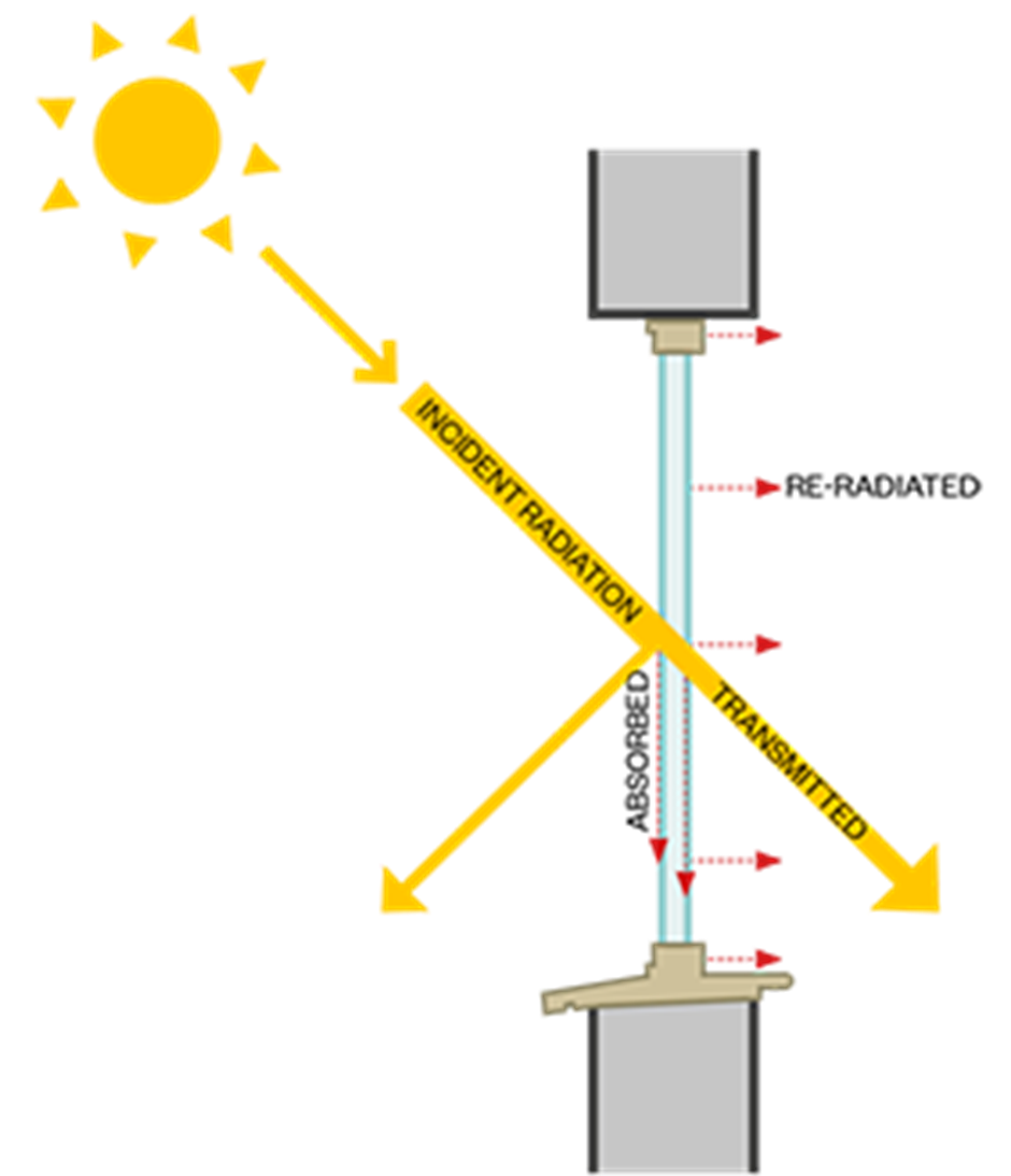 The g-value of glass is used to describe how much solar heat energy (short wave infrared radiation) can pass though a material. It is a factor on a scale from 1 to 0. Where 0 represents no solar gain and 1 represents maximum solar gain. For residential schemes a g-value of 0.5 is optimum. Reducing the g-value to mitigate the risk of overheating is not recommended. This can lead to larger proportions of glazing than is necessary, because glass has a higher conductive heat loss than an insulated wall, large amounts of glazing can greatly reduce the energy efficiency of the building.