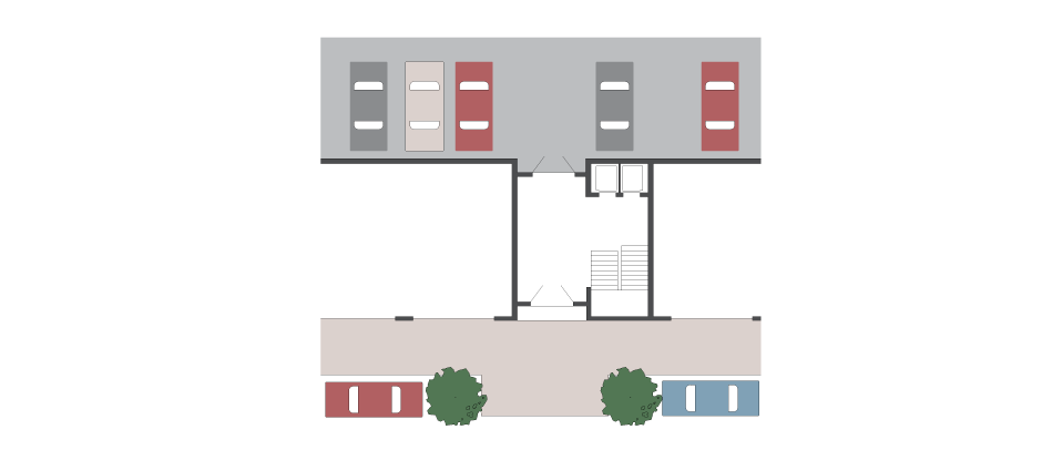 Occupiers of buildings will typically find it convenient to have an external staircase from the internal, communal courtyard to the parking area below.
