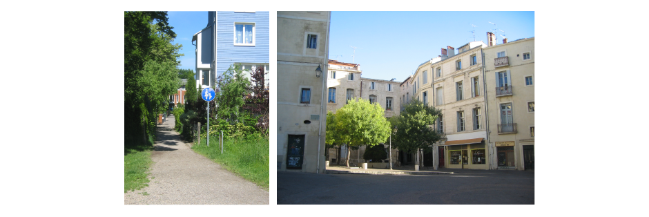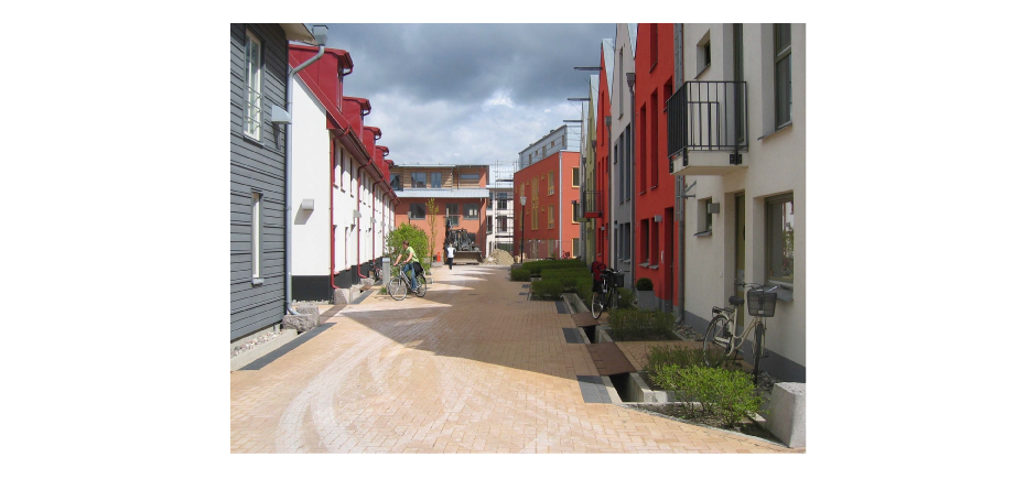 (Left) Pedestrian link connecting a network of green spaces, Vauban, Freiburg, Germany