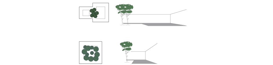 The proportion of tree enclosure to built enclosure will affect the identity of a space, giving it a ‘hard’ or ‘soft’ character. Similarly, an area with higher tree content will have a different character from one with lower tree content.