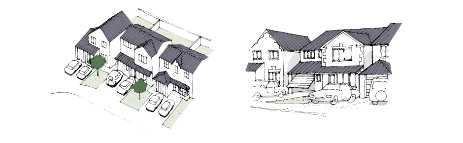 - One or two dwellings in a street sequence may be set back to create an incidental feeling of extra space and greenery.