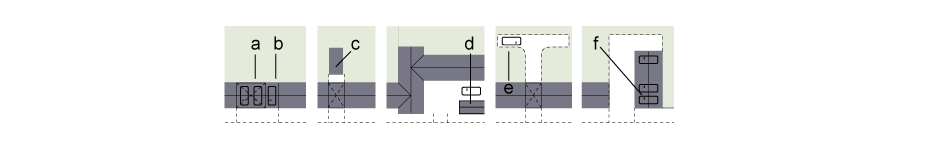The satisfactory enclosure of urban space becomes impossible when houses are set back from the road to accommodate private parking spaces – as may occur when houses feature integrated garages, or when they form a row of terraces without designated parking beneath or behind the houses.
