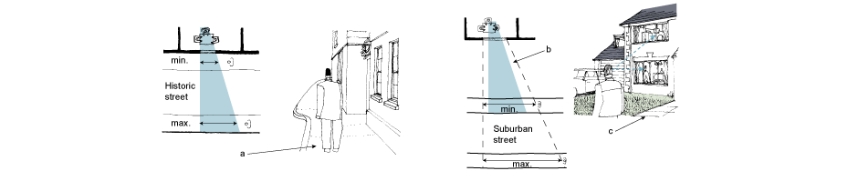 All such spaces should be overlooked by windows, while alcoves and corners where intruders could hide should be avoided. Indeterminate open areas in front of houses should also be avoided. Experience shows that residents have a lower expectation of privacy from the public or access side of the dwelling; it is therefore not necessary to be as stringent in requirements for privacy on this side.