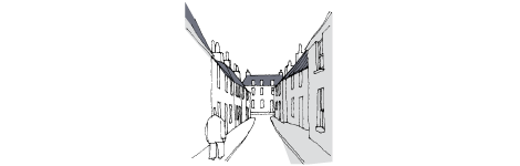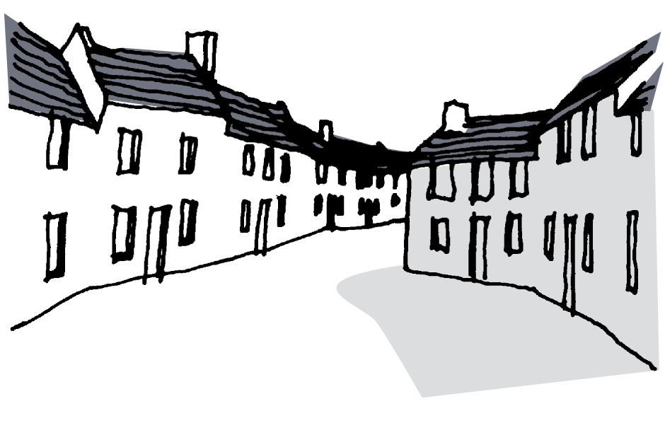 - A varied skyline incorporating chimneys and dormers.