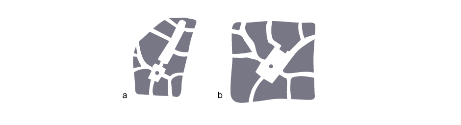 Static spaces should be sufficiently strongly enclosed that a linear feature (such as a road passing through) does not detract from the feeling of enclosure. Such an effect may be mitigated by a design treatment of the ground plane that emphasises the static nature of the space, but this is no substitute for effective enclosure by buildings.