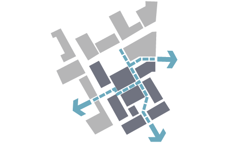 An overriding objective will be to create patterns of movement to form a connected grid. This can have either a regular or a deformed shape but, importantly, each end of a street or path must be connected to others. Systems that lead nowhere else are not appropriate.