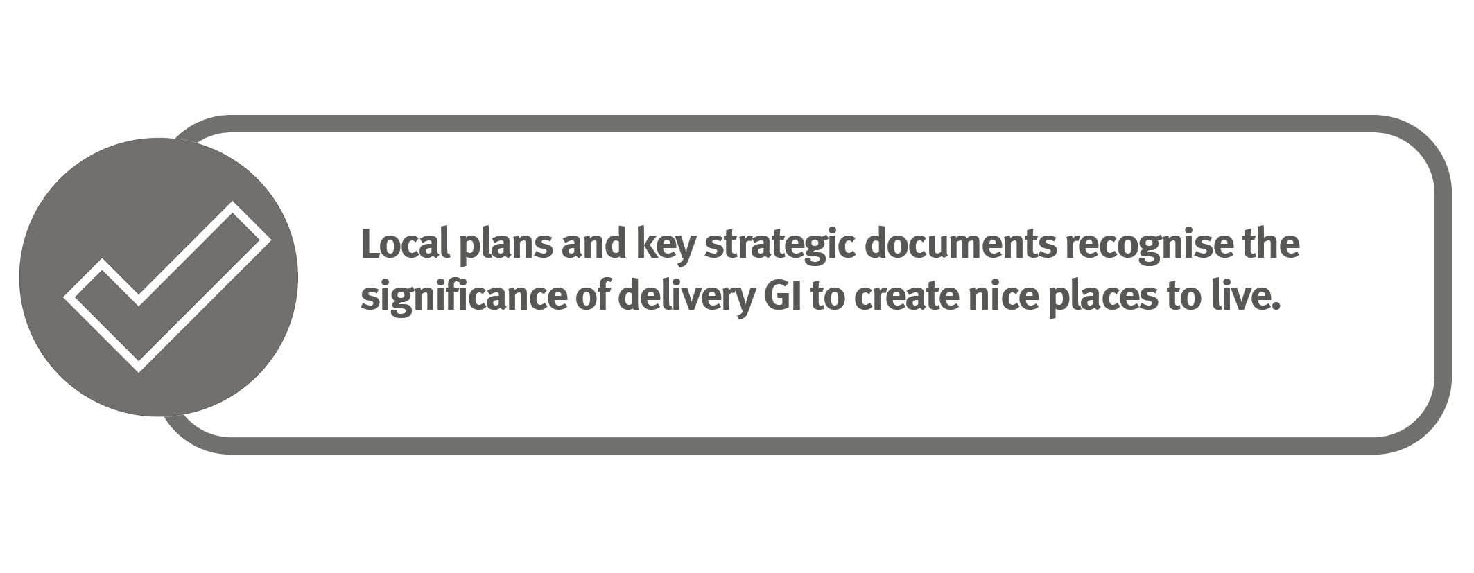 GI needs to be embedded throughout development proposals and projects as well as strategic plans, policies and projects in order to help create prosperous communities.