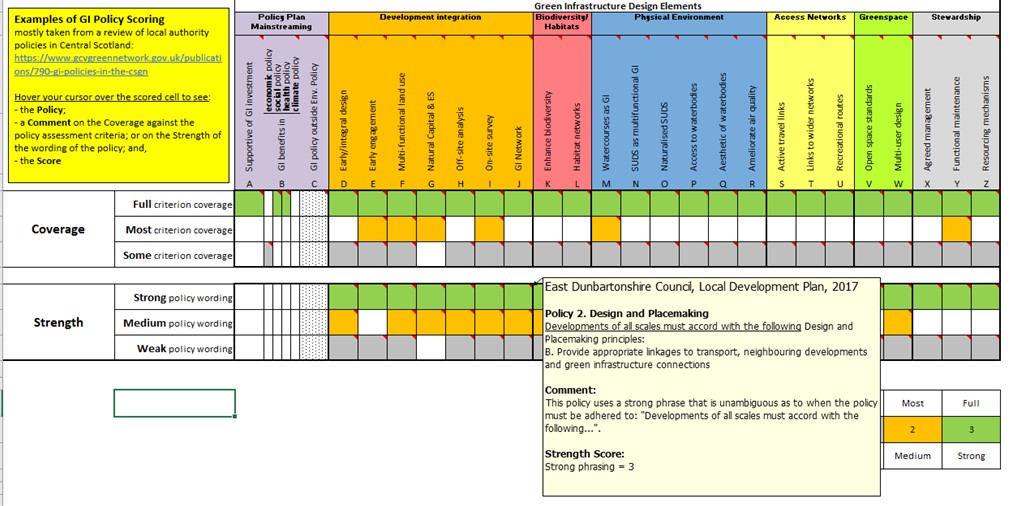 Make the context of your plan, policy, project or programme clear at the outset. Development comments may carry less weight if there is not clear policy wording within guidance documents such as local plans. By not having strong policy wording within strategic documents GI can be overlooked due to other competing policy priorities.