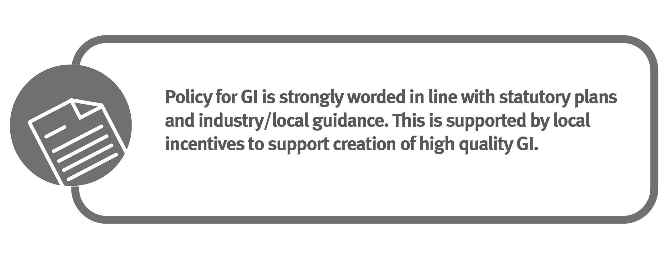 Development proposals and policy wording need to make strongly worded commitments to the protection and provision of GI on site, recognising GI as a positive economic, social, and environmental asset, serving as critical infrastructure.
