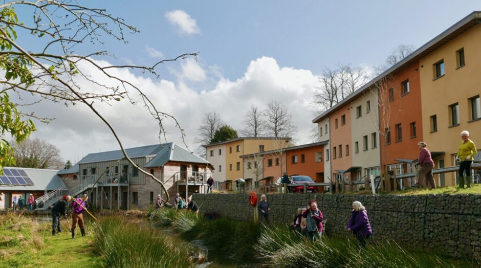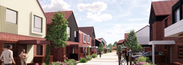 The housing development overlooks a shared open space, creating passive surveillance. Active frontages surrounding the development promote a sense of safety.